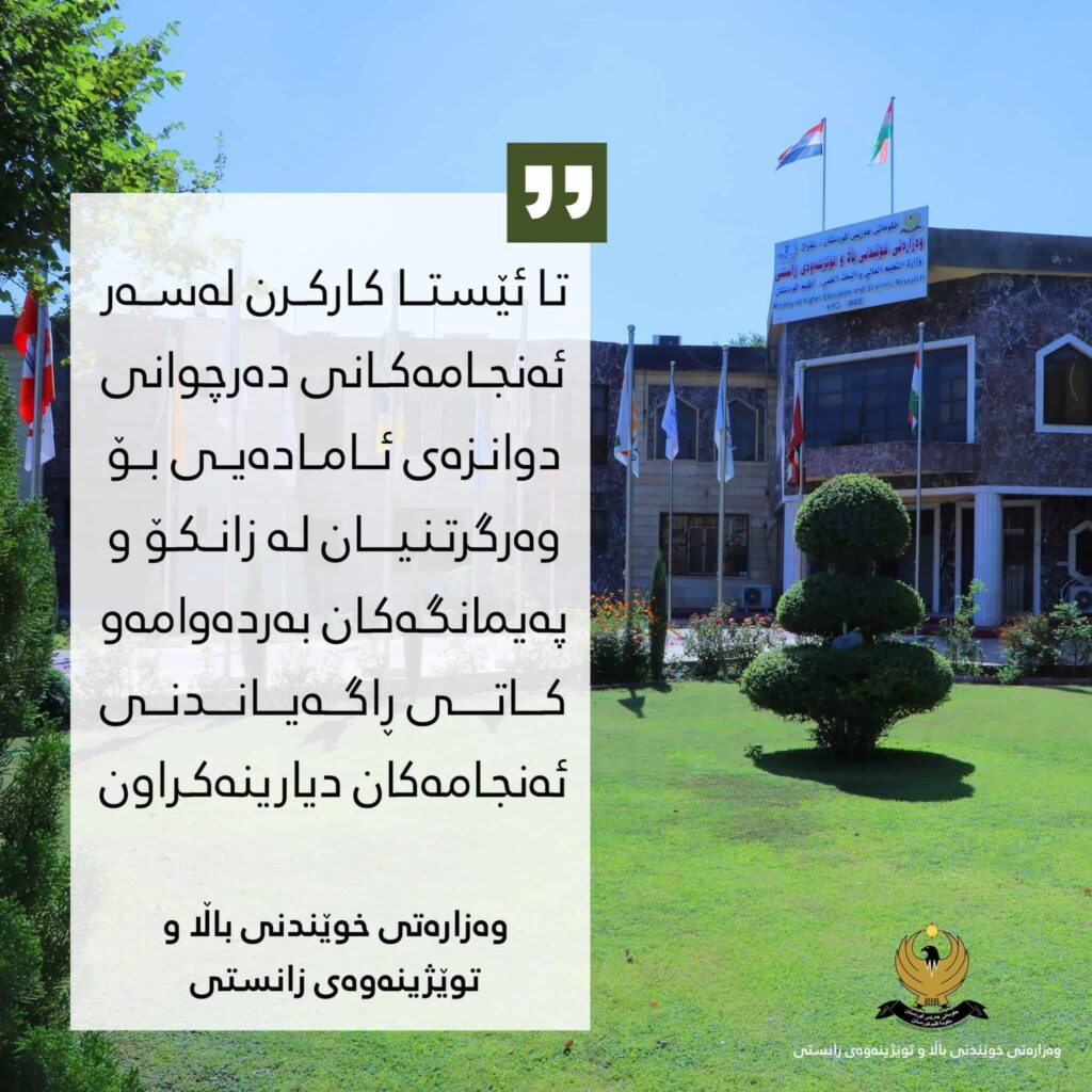 وەزارەتی خوێندنی باڵا: کارکردن لەسەر ئەنجامەکانی زانکۆلاین بەردەوامە و کاتی ڕاگەیاندنی دیارینەکراوە