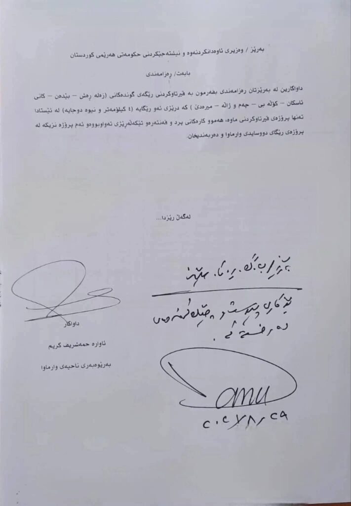 لەسەر داواكاری بەڕێز (ئـاوارە حمەشریف)بەڕێوەبەری ناحیە و دوای زیاتر لە چوار ساڵ لە هەوڵ و بەدواداچونە بەردەوامەكانی بەمەبەستی قیرتاوكردنی ڕێگای گوندەکانی( زەلەڕەش ، بێدەن، کانی ئاسـکان ، کۆڵەبی ، چەموژاڵە ، میرەدێ).