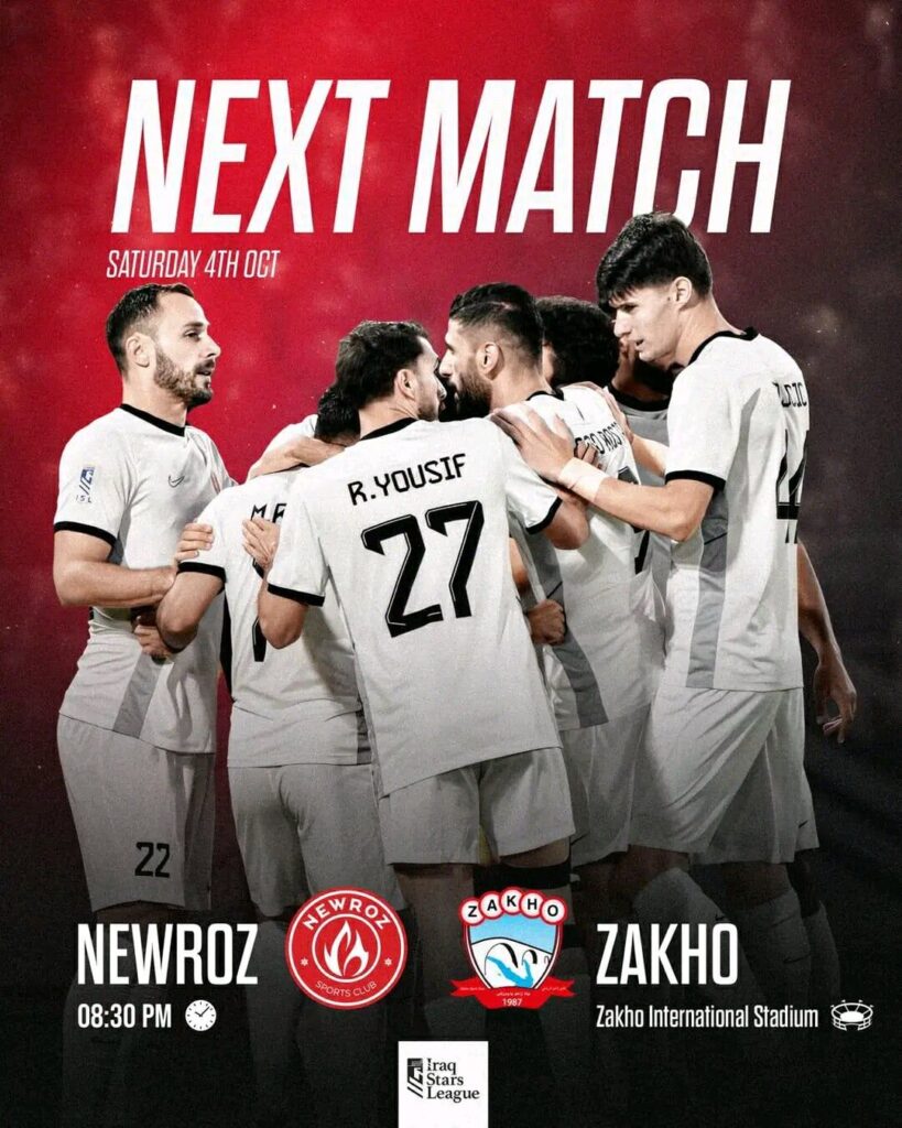 سبەی شەممە، یاریگای نێودەوڵەتی زاخۆ میوانداری یارییەکی گەرم و پڕ لە گرنگی دەکات لە چوارچێوەی گەڕی چوارەمی خولی ئەستێرەکانی عێراقدا، کە تیایدا یانەی نەورۆز دەبێتە میوانی یانەی زاخۆ.